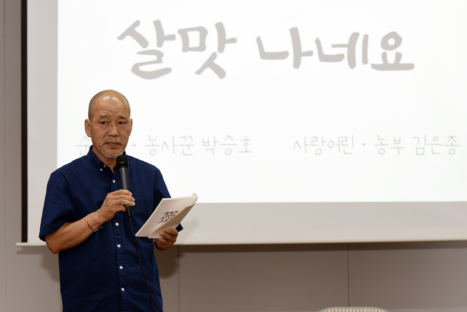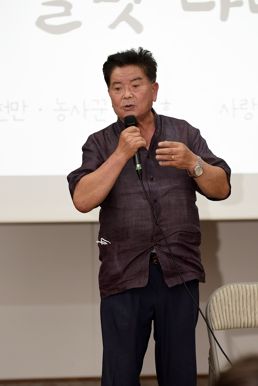 예전에 사람들이 '미련한 놈아, 촌에 가서 농사나 지어라' 그랬거든요. 내가 장관한테 건의했어요. "이 말, 바꿔주시오. 미련한 놈이 어떻게 농사를 짓겠어요?" 도끼를 갈아 바늘을 만드는 심정으로, 마부작침으로 생각하겠다, 그래요. 미련한 놈이 어떻게 농사를 짓겠소? 그런데 왜 말을 그렇게 해요? 어디 가서도 농사 못 지어요. 지금은 농사가 예술이여, 예술! 맞아요. 예술이요.