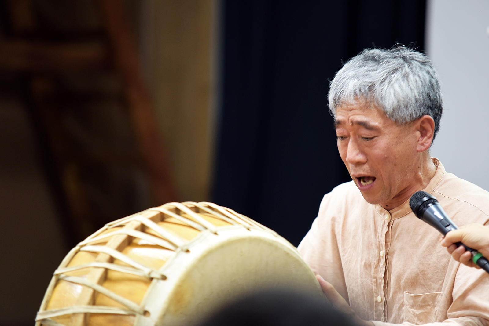 시소리꾼인 김평부 님이 대금과 시소리로 오늘 낭독회를 축하해줬습니다. 우리 시대의 어른이셨던 돌아가신 채현국 선생님이 동학 소리 최고 소리꾼이라 칭찬했던 분입니다.