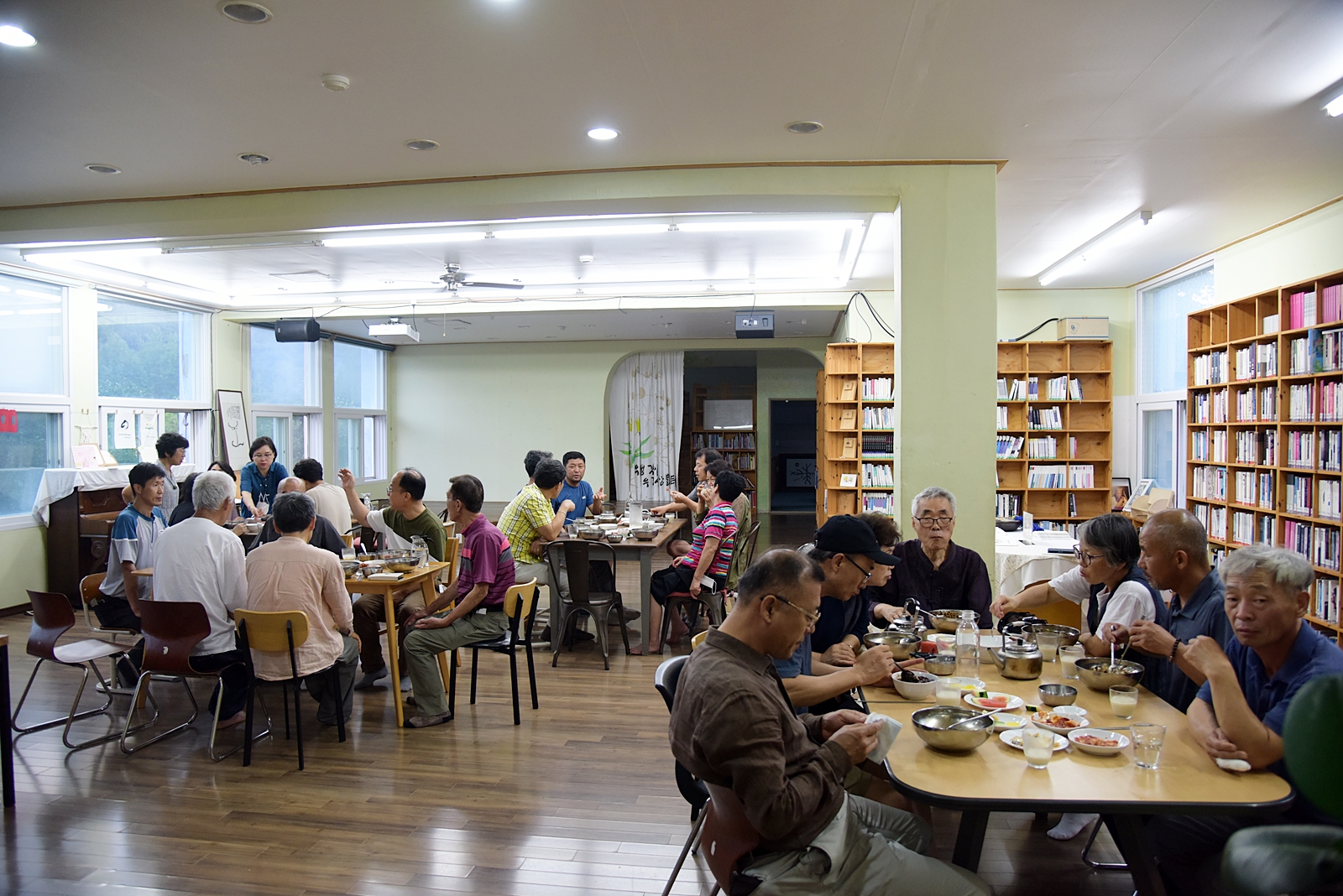 저녁밥은 박승호 님이 농사 지은 쌀로 밥을 짓고, 보성 득량반점 조셰프 님이 가지탕수육과 짜장면을 만들었습니다. 공양간에서 아이들이 길게 늘어 섰습니다. 짜장면을 대하는 아이들 눈빛이 빛나고, 온정성으로 돌돌 감아 입으로 가져갑니다. 논에 물이 들어가듯 아이들 입에 음식이 들어갑니다. 그 두 가지를 바라보는 마음은 다르지 않겠지요? 온전한 먹거리가 아이들 입으로 들어가는 모습을 보는 것이야말로 살맛 나는 세상이 아닐까요? 사람들은 그것을 위해 살맛 나는 삶을 이야기하는 것일지도 모릅니다.