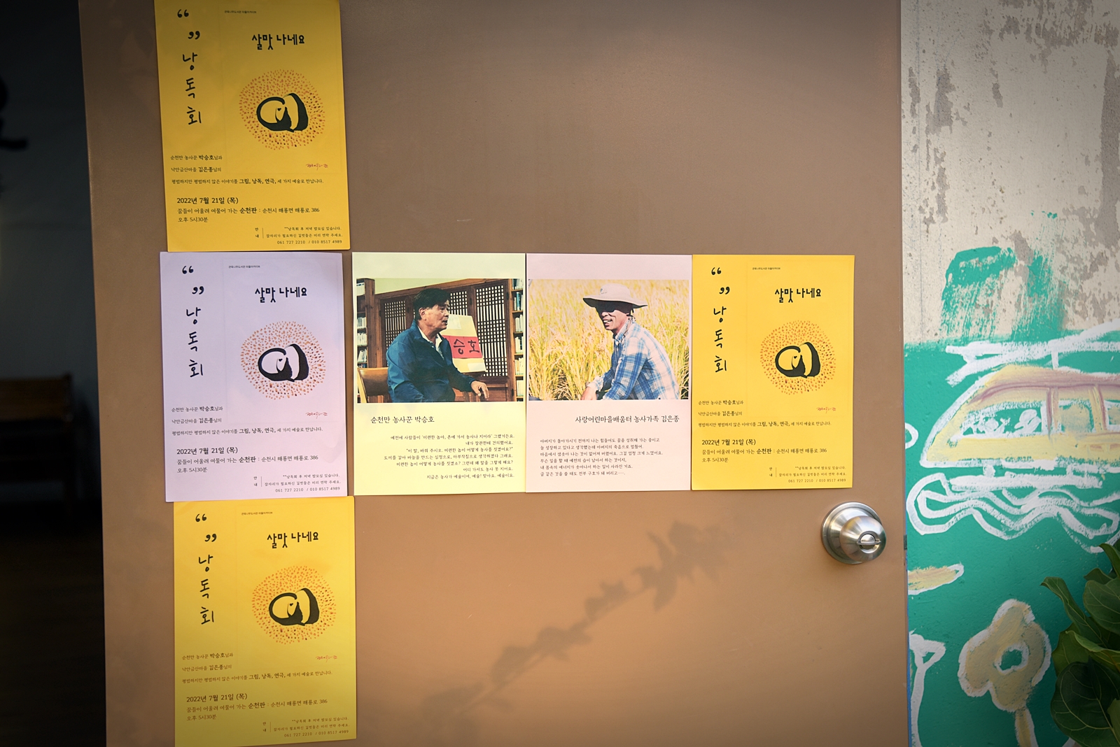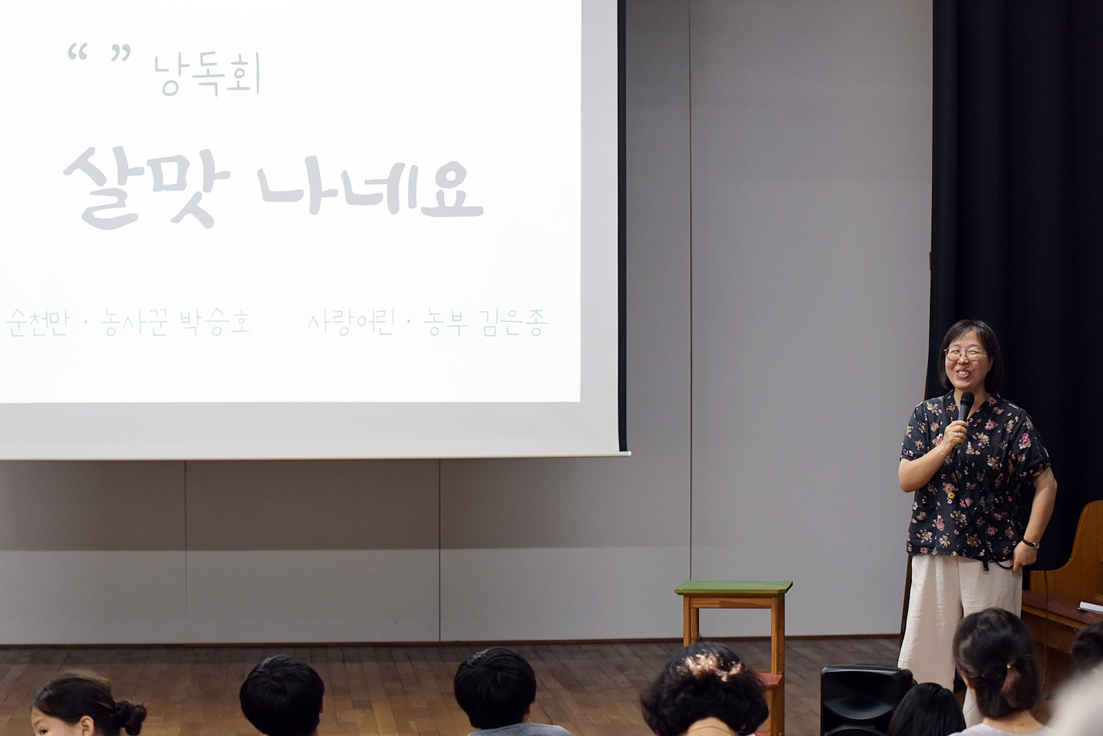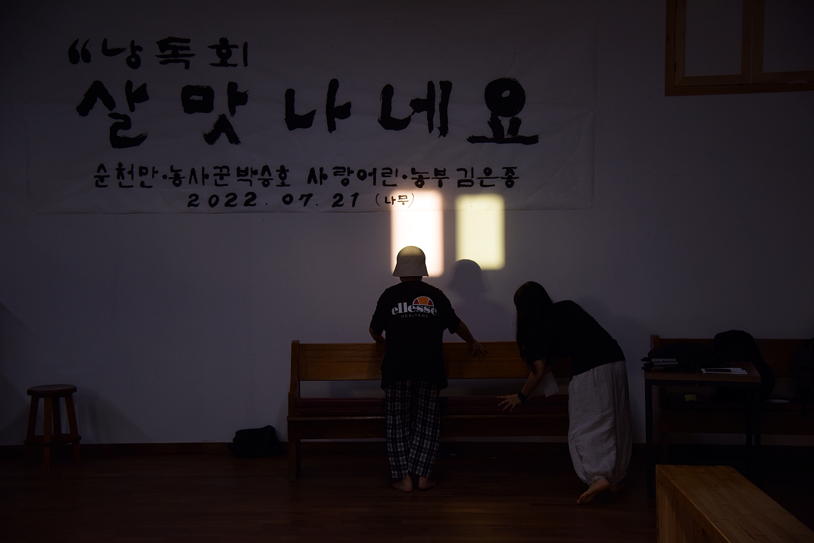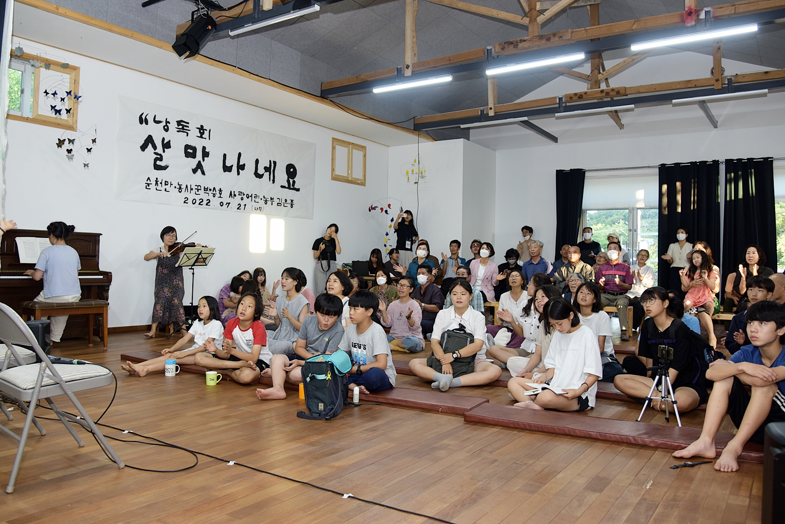 7월 22일, 여름날의 태양이 제 할 일을 다하고 서쪽 산을 향해 달리기 시작할 때 사람들이 모여듭니다. 여름날의 태양은 서서히 사위어 가며 서쪽 하늘을 불태울 준비를 하고, 사람들은 뜨거운 여름날 하루를 살아낸 뒤 자기 안에 담긴 삶의 조각을 나누기 위해 둘러 앉습니다. 순천판에 자리를 잡은 사람들이 노래를 부르며 마음을 모을 때 여름날의 매미도 따라서 노래합니다. 오랜만에 순천판이 아이들과 어른들로 가득합니다.