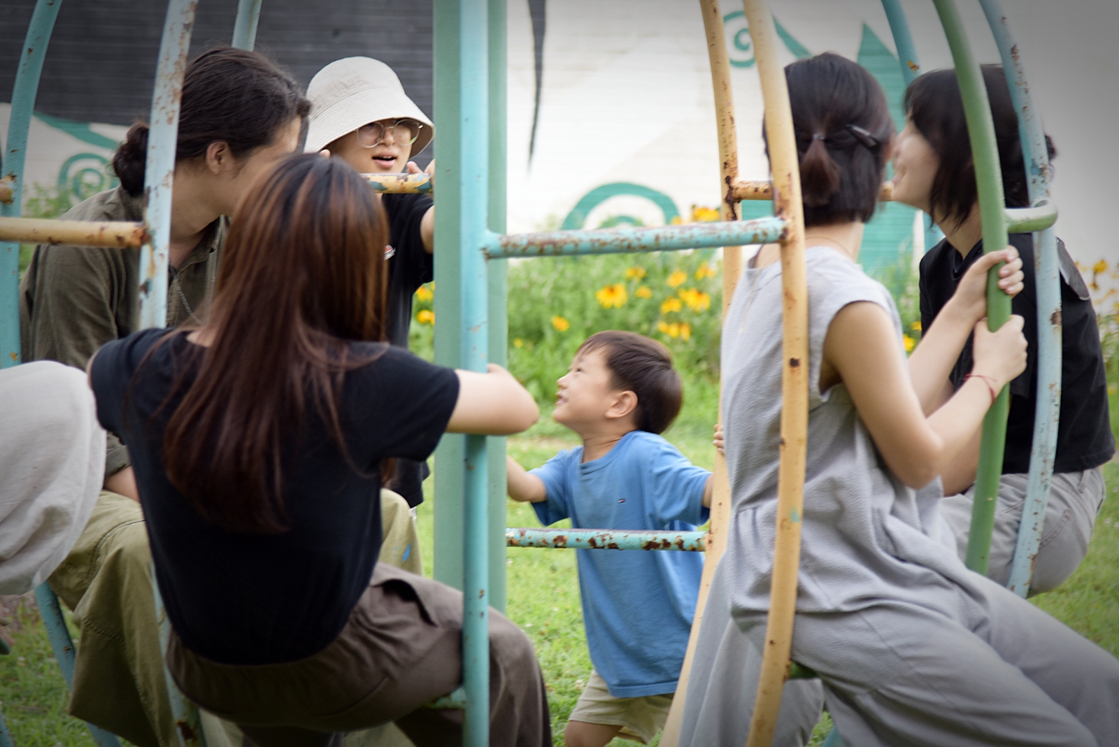 아이들은 공양간에서 짜장면이 완성되기를 기다리며 재잘거리고, 뛰어다니고 놉니다. 짜장면을 기다리는 동안 관율이가 형, 누나 들을 태운 놀이기구를 돌립니다. 형, 누나 들이 우와, 놀랍니다. 관율이가 벌써 이렇게나 컸답니다. 이제 어른들은 도서관으로 자리를 옮겨 얼음이 담긴 막걸리를 마시고, 짜장면과 흰 쌀밥을 먹고, 수박씨를 뱉으며 못다한 이야기를 나눕니다.