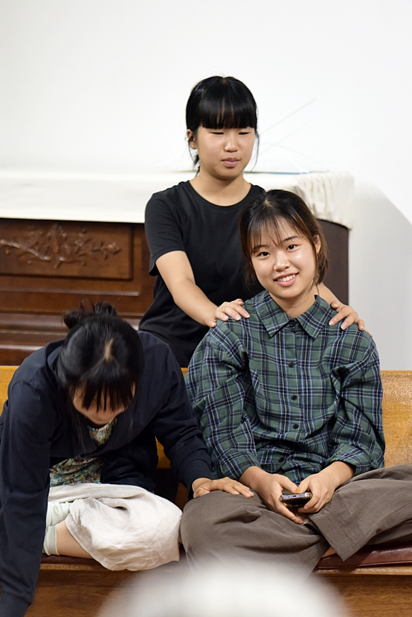 사랑어린마을배움터, 관옥나무수도원도서관에서 매월 이별꽃스콜레를 이렇게 한 번씩, 한 번씩 차곡차곡 엮어가고 있는 중이에요. 오늘 선생님께서 들려주신 말씀들 천천히, 마음 짓을 잘 하고 사는 우리가 되었으면 좋겠어요. 그런데 저는 오늘, 무엇보다도 칠순이 넘어가는 어른과 또 이렇게 뱅글뱅글 가운데서 뒹굴고 있는 초등학교 1학년 나우부터 시작해서 20살 청년들이 함께 다양한 사람들이 어울려서 이별과 죽음과 삶이, 또 사랑과 슬픔과 이별이 따로 있지 않고 하나가 있다는 이런 얘기를 만들어가는 이 자리가 되게 특별하고 귀한 것이 아니라 우리의 일상이 되면 좋겠다, 이런 생각이 들어요.