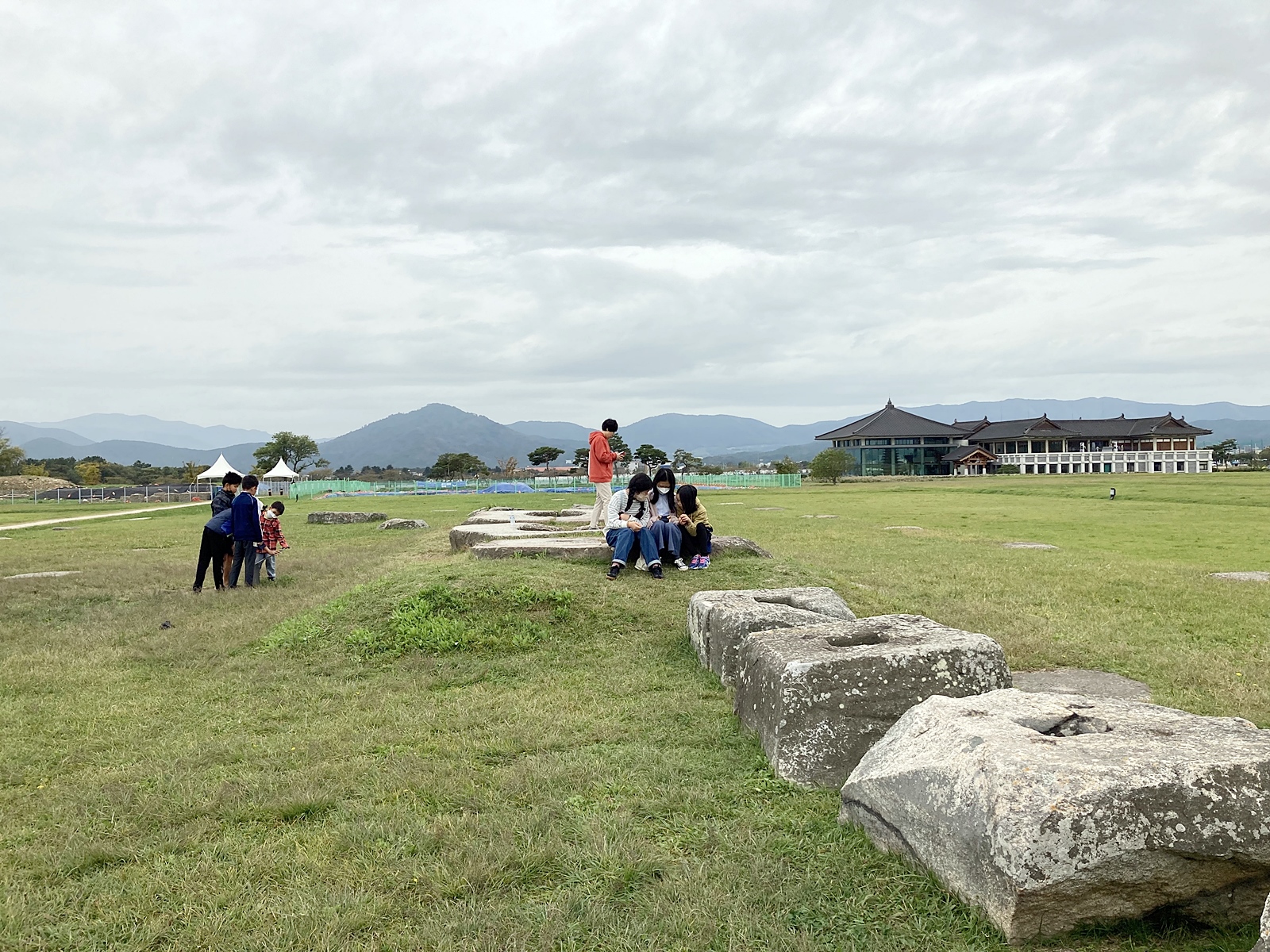 자동차와 사람이 가득 찬 경주 시내에서 우리는 둘째 날을 보냈다. 근무가 없었는지 망태가 왔다. 점심 먹기도 힘들었고, 주차하기는 더 힘들었다. 우리는 원효대사가 공부했다는 분황사 앞에서 단체사진을 찍었고, 벽돌로 만든 탑을 봤고, 우물에 얽힌 이야기를 들었고, 옹기종기 모인 돌탑더미에 우리가 만든 돌탑을 추가했다. 우리는 후마의 말에 귀를 쫑긋했고, 어김없이 다른 관광객도 가세했다. 그리고 우리는 한없이 넓은 황룡사 터를 뒤덮은 코스모스 사이를 가로질렀다. 아이들은 황룡사박물관에 들어가서 축소 복원한 목탑을 구경했고, 어른들은 입장료를 받지 않는 입구 기념품 가게를 어슬렁거렸다.