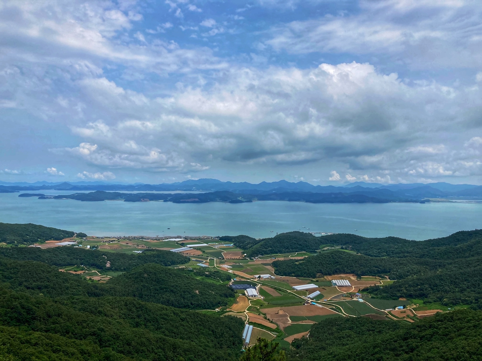 정상이 가까운 것 같은데, 했을 때 은하수는 오래 쉬었다 간다며 길 옆에 앉았다. 몇 걸음 더 올라가니 정상이었고 전망대가 있었다. 등산의 관용어인 조금만 더 가면,이 말로만이 아니라 그야말로 조금만 더 가면 정상이었다. 산은 돌아가면 나타날 것 같아도 돌아가면 또 가야하고 나타나지 않을 것 같다가도 불현듯 나타난다. 뭐가 됐든 산에서는. 오봉산은 해발고도가 300미터 정도로 낮지만 바다에서 곧장 올라온 탓에 산은 높았고, 바다를 품었고, 멀리 고흥을 담고 있었다. 남녘 산은 산뿐 아니라 바다를 품고 있어서 어질고 지혜로운 이를 만날 수 있어서 좋다.