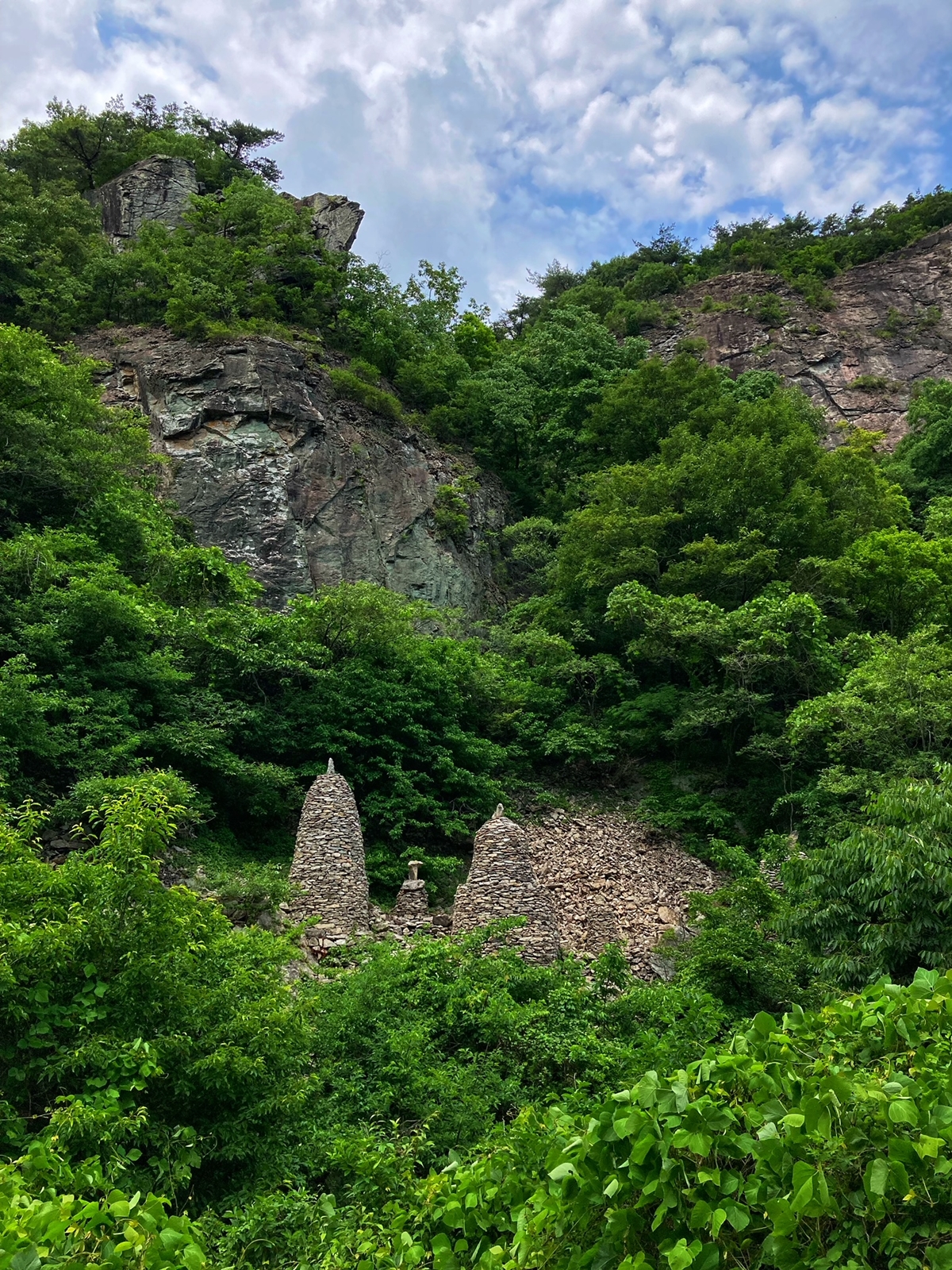 오봉산은 봉우리 다섯 개 산봉우리가 이어진 산군을 일컸는 이름이었다. 안내문에서 오봉산은 온돌 구들장을 채취한 산이었다고 했다. 산에 오를수록 우리나라 방마다에 깔린 구들장의 대부분이 여기 오봉산에서 생산됐다는 말을 실감했다. 평평하고 널찍한 돌이 도처에 깔렸고, 등산로를 만들 때 나온 돌로 탑을 쌓았는지 돌탑이 많았고, 산은 암벽 등반가가 좋아할 만큼 기암괴석이 즐비했고, 폭포에서 떨어진 물이 계곡을 이루기도 했다. 기암괴석 중에서도 능선을 따라 내려오는 길에 서있던 칼바위는 칼보다 칼로 도려낸 것 같다거나 코브라처럼 보이기도 하지만 모양만큼이나 기이한 이야기를 담고 있을 법했다. 너덜지대와 돌탑, 암벽을 보며 그래서 주차장에 자동차와 등산 동호회 버스가 많았고, 등산하는 사람들에게 꽤나 알려진 산인 갑다, 했다. 동네 뒷산을 찾아 왔는데 알고 보니 숨은 명산이었다.